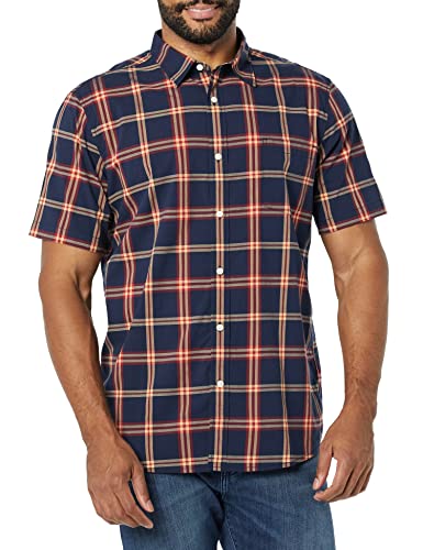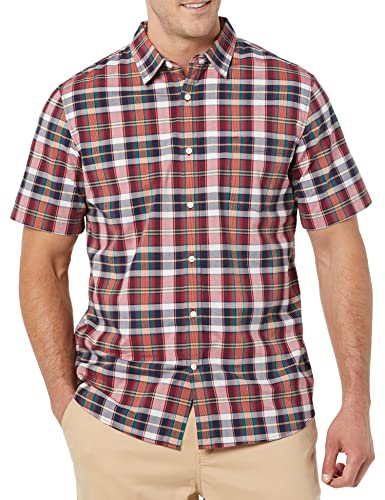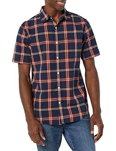 Amazon Essentials kortärmad stretch poplin skjorta för män (finns i stora och långa), marinblå röd pläd, medium