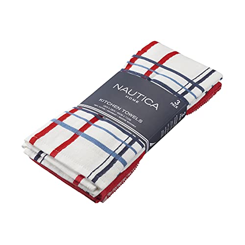 Nautica Bomull klassiker 3 delar kökshandduksset, 45 cm x 71 cm, röd/vit pläd