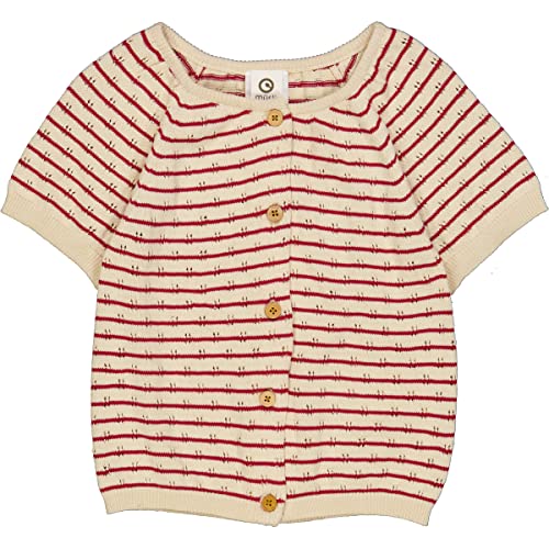Müsli av grön bomull flicka stickad randig S/S kofta tröja, Berry Red, 116