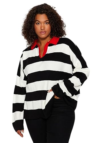 Trendyol dam randig långa ärmar avslappnad plus size tröja, röd, XL