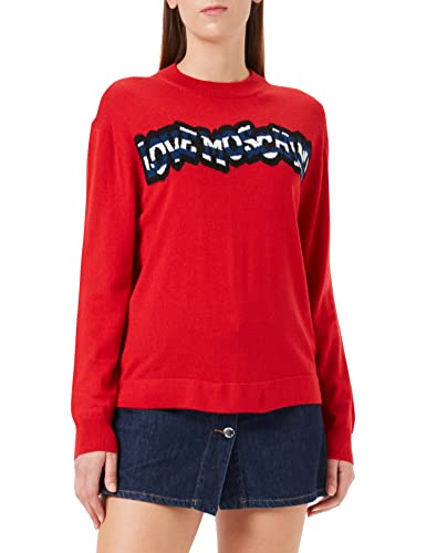 Love Moschino Dam normal passform långärmad rund hals med randig logotyp tröja tröja, röd, 46 SE