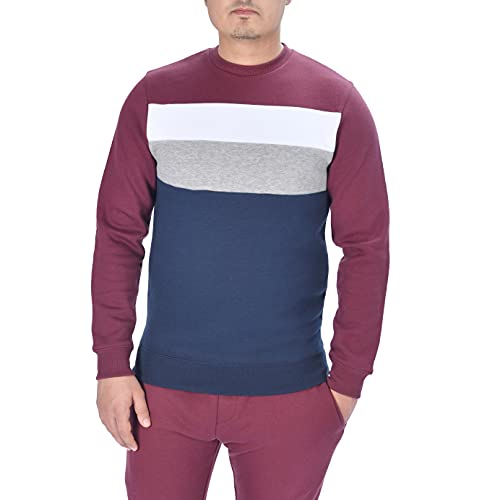 M17 Klassisk herrtröja med crew neck-skurning med färgblock, randig, sweatshirt, ledig pullover, långärmad tröja, Vinröd, M