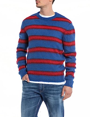 Replay Tröja för män, 130 randig sky/bordeaux/röd, S