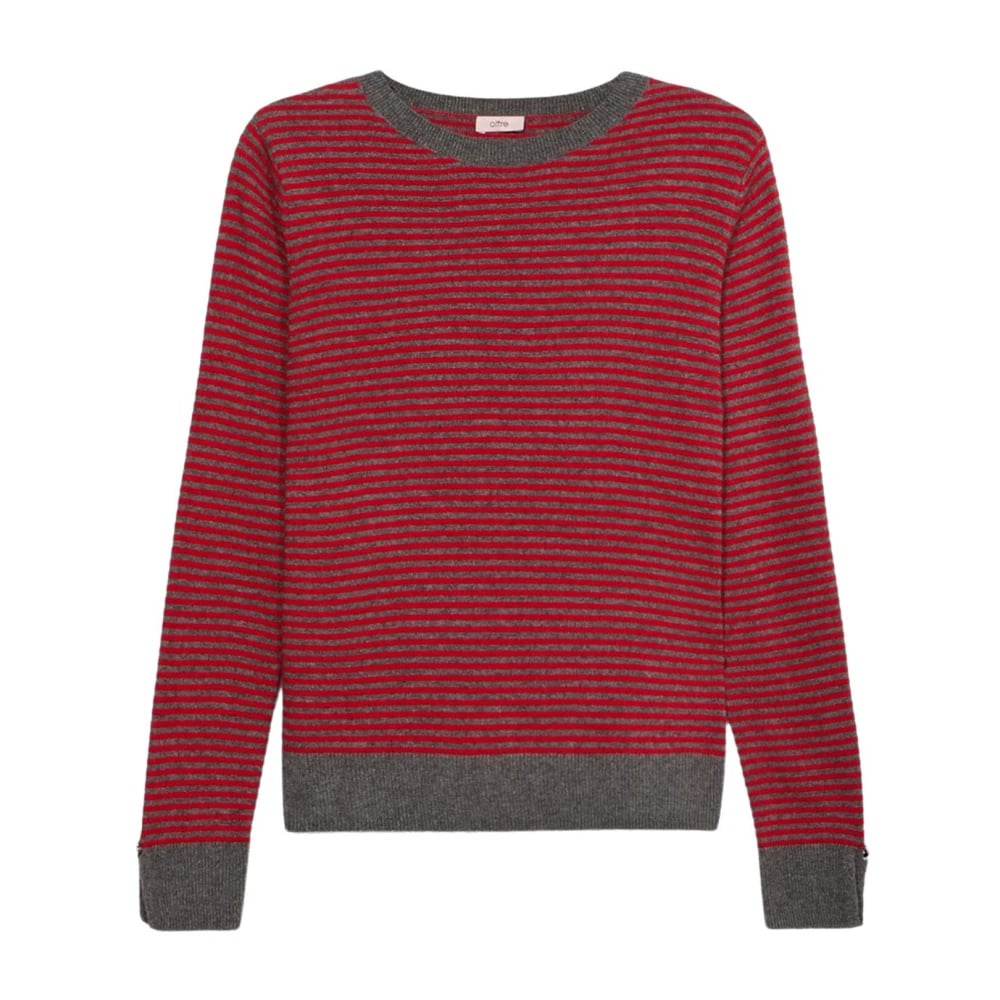 InWear, Stickade Tröjor , Dam, M, Bomull, Röd Randig Bomullströja Klassisk Passform