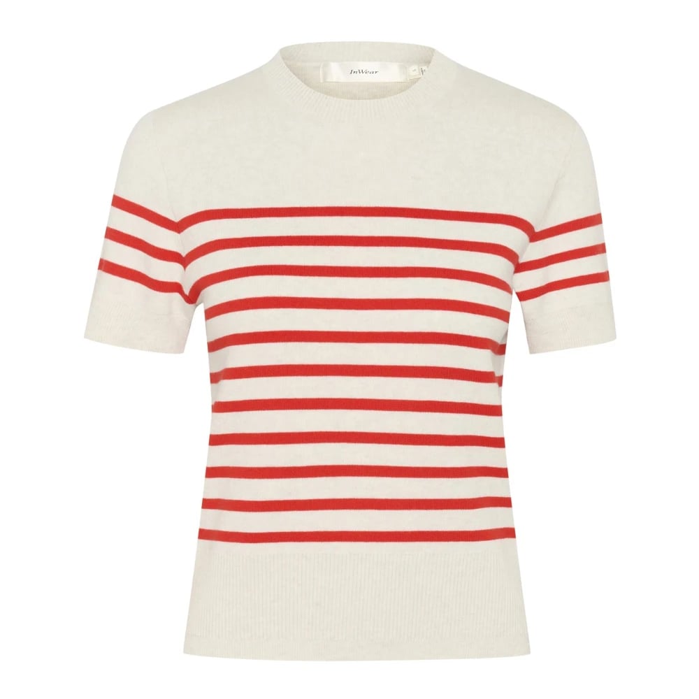 InWear, Stickade Tröjor , Dam, S, Bomull, Röd Randig Bomullströja Klassisk Passform