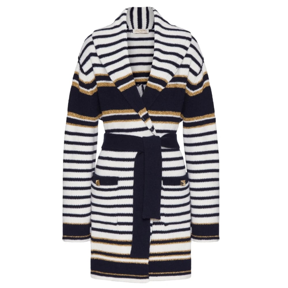 Valentino, Stickade Tröjor , Dam, S, Randig Cardi-Coat i Lurex