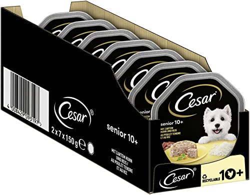 Cesar Hundmat Senior 10+ våt mat med delikat kyckling och ris i gelé, 14 skålar (14 x 150 g)