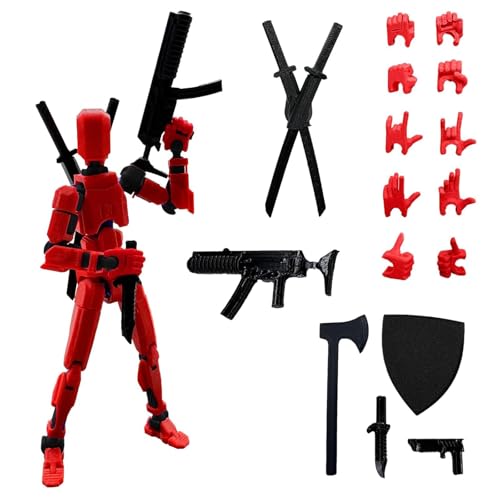 T13 Actionfigurset (avslutad montering), 3D-tryckta multileder, titan, 13 actionfigurer, Lucky Mobil robot, actionfigur, dummy, skrivbordsdekoration för spellieägare, leksak (svart röd)