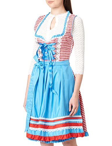 Dirndline Damer underbröst dirndl med rutig klänning för speciella tillfällen, Blå/röd/vit, XS