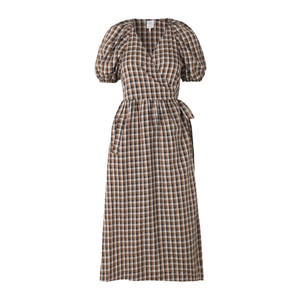 Baum und Pferdgarten, Klänningar , Dam, L, Bomull, Rutig Puff-Ärm Midi Klänning