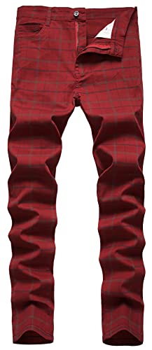 FEOYA Herr raka ben rutig klänning chinos byxor/casual slim fit högelastiska byxor, bomull, medelhög midja, klassisk, high end, alla årstider, storlek 28–42, 01-röd, 44 SE