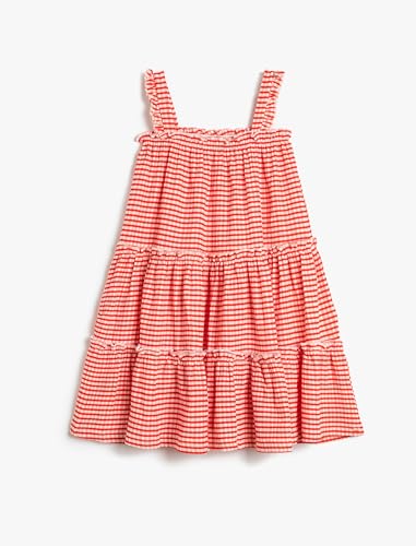 Koton Girls's Midi rutig strappy relax cut dress, Röd kontroll (05 t), 6-7 Jahre