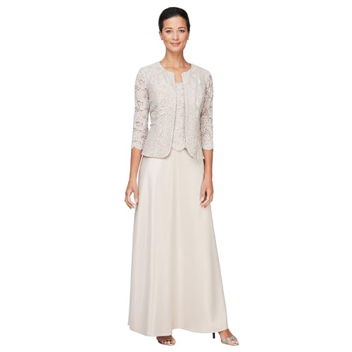 Alex Evenings Dam lång mock jacka klänning med satin kjol stängning klänning för speciella tillfällen, Klassisk taupe petite, 42 SE Liten