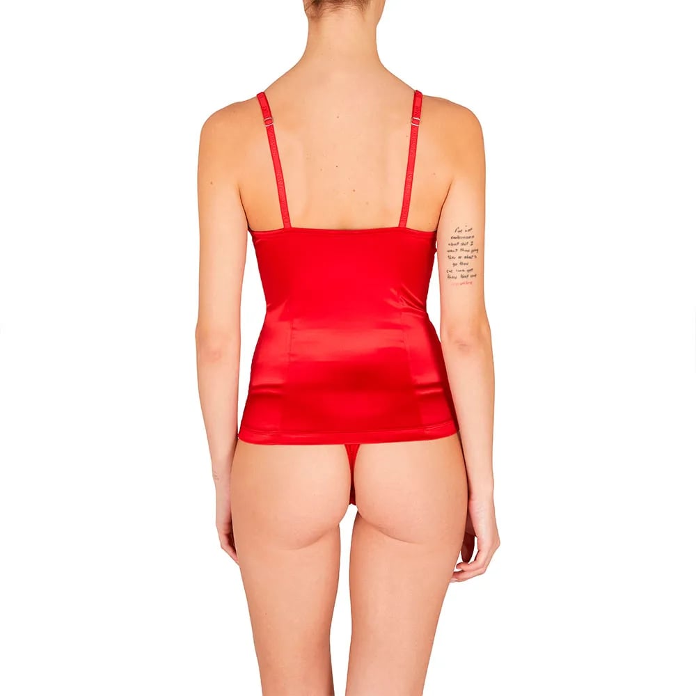 RSLOVE Satin pyjamas dam sexig – sidenpyjamas-set kort 2-delat nattlinne, röd, M