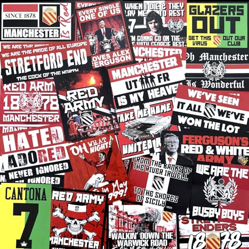 100 x Manchester Utd-klistermärken – inspirerade av MUFC Ultras United röda armén scarf flaggor banderoller