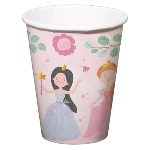 Folat Födelsedagsdekoration-Rosa-Biecchieri-Pretty Princess-250 ml-8 st - Prinsessa Party Servis, 27485