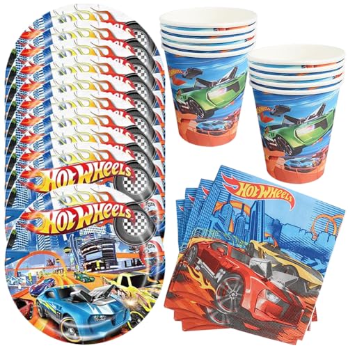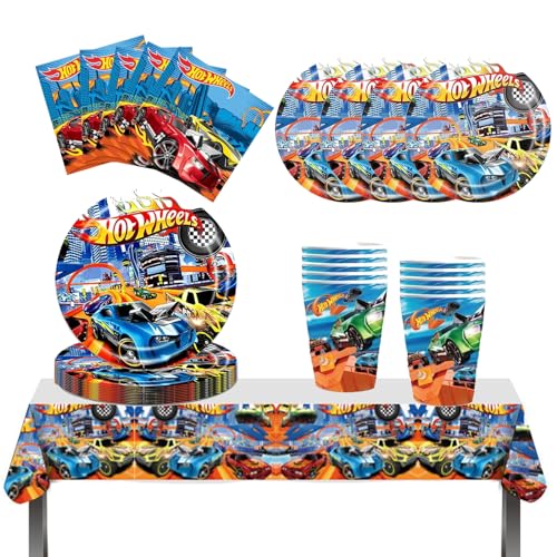 HGSHUO Bil festservis för Hot Wheels party servis racingbil barnfödelsedag dekoration födelsedag papperstallrik mugg servetter racingbil födelsedagsfest baby show bordsdekoration