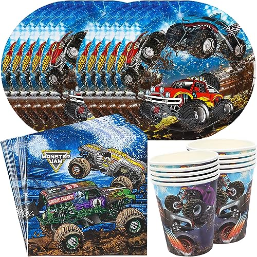 YGCHEN Monster Truck party servis racerbil porslin barnfödelsedag dekoration bil party porslin monster papperstallrik servetter födelsedag porslin set 10 gäster