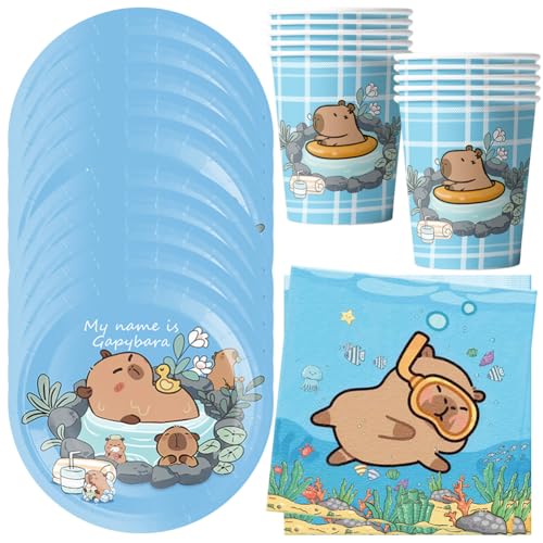 MEZHEN Capybara festservis barnfödelsedag dekoration födelsedag party servis djur papperstallrik mugg servetter baby party bordsdekoration set