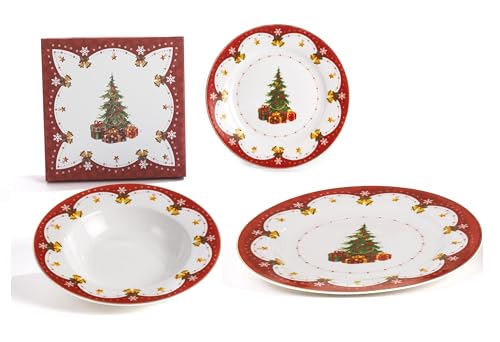 PABEN Servis 12 jultallrikar med 4 stora våningar, 4 vanliga våningar, 4 vanliga porslinsfonder med eleganta litograferade presentlådor