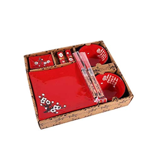 lachineuse Röd japansk middagsservis - Traditionell japansk servis - risskålar, tallrikar, pinnar och korv för 2 personer, japansk gåva, asiatisk bordsdekoration