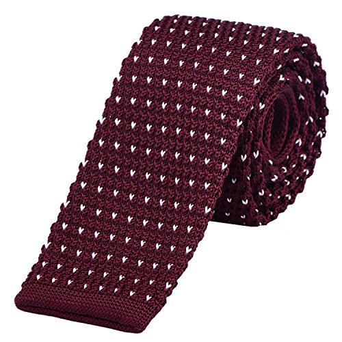 DonDon smal stickad slips 5 cm mörkröd med vita prickar