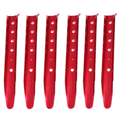 Azarxis Tältpinnar för snö och sand, U-formad campingpinne, slitstark aluminiumlegering, markinsats, lätt metall, tältspikar, 6 stycken för picknick, strand, utomhusbruk, camping (röd)