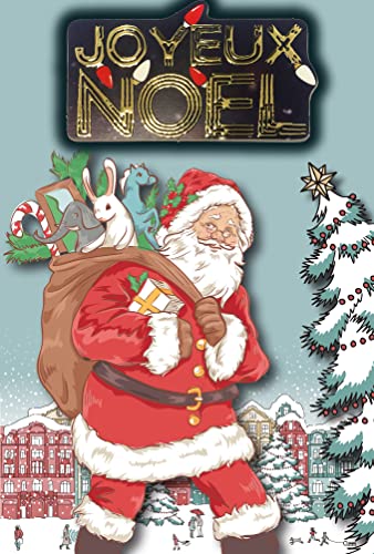 Afie 61-6050 God julkort med kuvert och limning i guld glänsande glittrande gyllene girlang tomten kostym röd huva leksaker häst elefant gran under snö