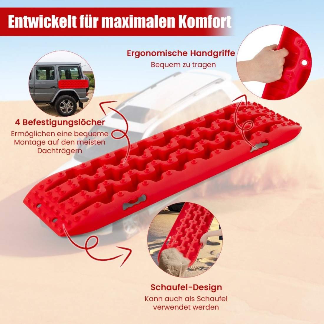 2 stycken draghjälpssandplattor terrängdäckstege för sand/lera/snö 107 x 31 x 7 cm röd