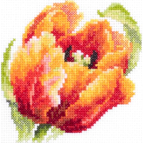 Magic Needle 150-010 ZW röd tulpan korsstygnsset med räkningsmönster kvistutgåva, bomull, flerfärgad, 11 x 11 cm