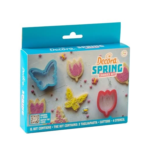 Decora Vårdekorationsset, 2 stycken tulpan- och fjärilsskärare och 4 dekorativa stenciler för att göra tredimensionella dekorativa kakor, tillverkade i Italien, 6-pack
