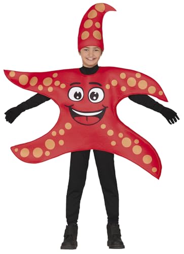 FIESTAS GUIRCA Bubblande sjöstjärna kostym för pojkar eller flickor - röd sjöstjärna tunika och mössa - kostymer för pojkar och flickor - unisexålder 7–9 år
