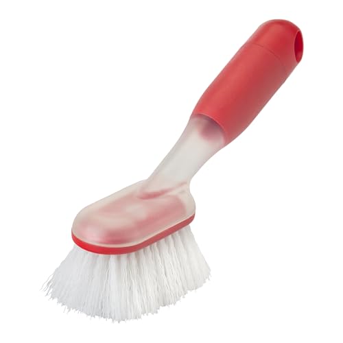 Vigar Rengo Tvålpumpande Diskborste, 21,5x6x12 cm, Diskborste med Tvålpump för Kastrull, Flaska, Disk, Diskbänksrengöring och Köksprylar, Röd