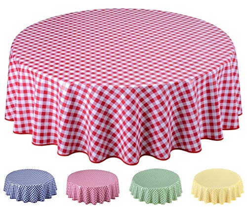 Rund vaxduk i PVC, avtorkningsbar bordsduk, bordsskydd, gingham-rutig, 160 cm (62 tum) röd