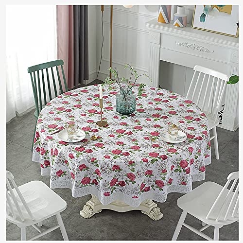 ZJYWMM Rund vaxduk torka ren PVC-bordsduk röd ros spetskant vattentät oljesäker matbordsduk robust vinyl bordsskydd för hem utomhus hotell fest dekor, diameter 180 cm