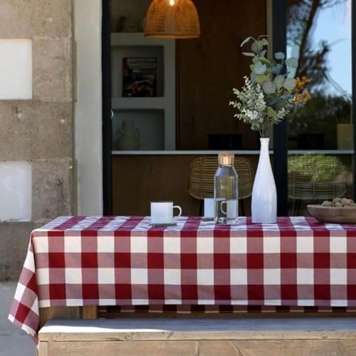 BELUM | hartsduk fläckbeständig 550-03, Vichy rutig bordsduk storlek; 300 x 155 cm, fläckbeständig bordsduk ingen vaxduk, röd Vichy bordsduk, 100% ekologisk bomull vävd bordsduk
