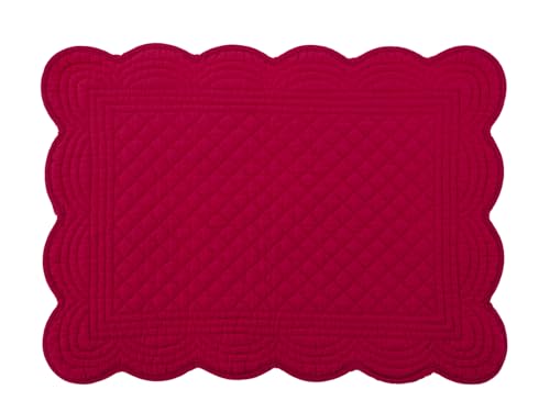H&H Set med 4 amerikanska quiltade bordstabletter i röd bomull, 45 x 33 cm – eleganta, handtvättbara, ingen torktumlare – för kök, matsal, frukost