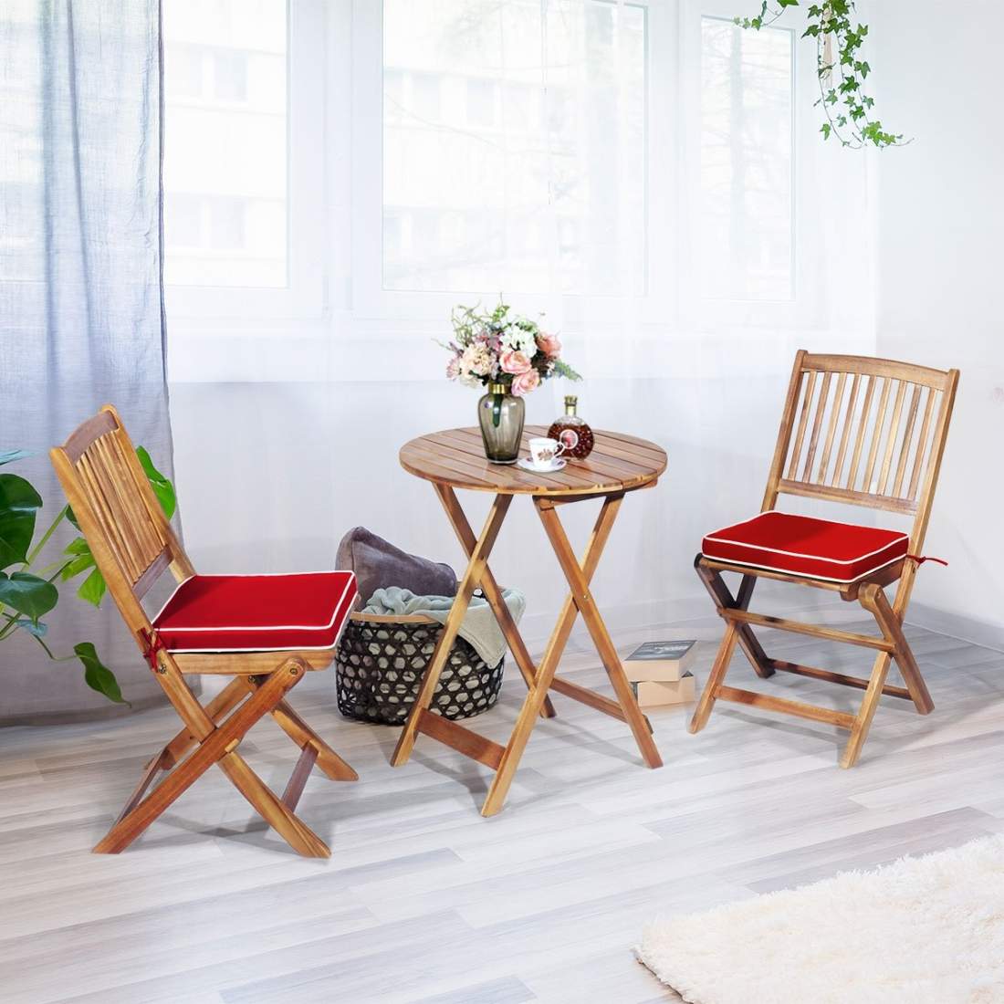 3 st. Utemöbler set med runt bord & 2 stolar & 2 kuddar ergonomisk sittgrupp röd