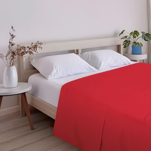 ECOMMERC3 | Extra mjukt och bekvämt lakan 135-säng - rött lakan tillverkat i 100% i Spanien, justerbart, lätt att tvätta och slitstarkt