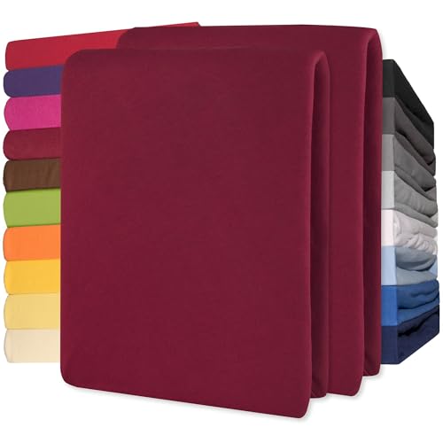 CelinaTex Lucina dra-på-lakan dubbelpack 90 x 200 – 100 x 200 cm rubin röd bomull dra-på-lakan jersey lakan