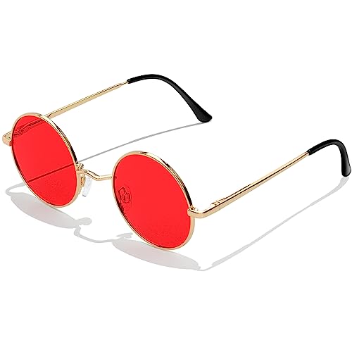KANASTAL Röda Solglasögon Polariserade Herr Dam Runda Kvinnor Sol Glasögon Retro Hippie Steampunk Halloween Cosplay Gold Red Round Polarized Sunglasses Men Women UV400 - Röda Linser Guldbåge