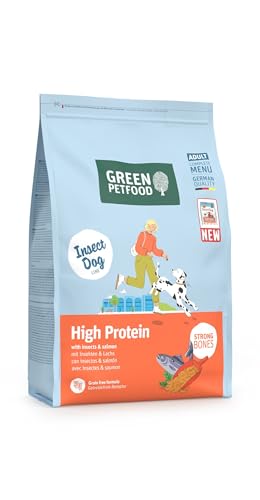 Green Petfood InsectDog High Protein med insekter och lax (1 x 3 kg) | Vuxen | Premium torrfoder för vuxna aktiva hundar | med röda linser | liten krokett | kornfri | 1-pack