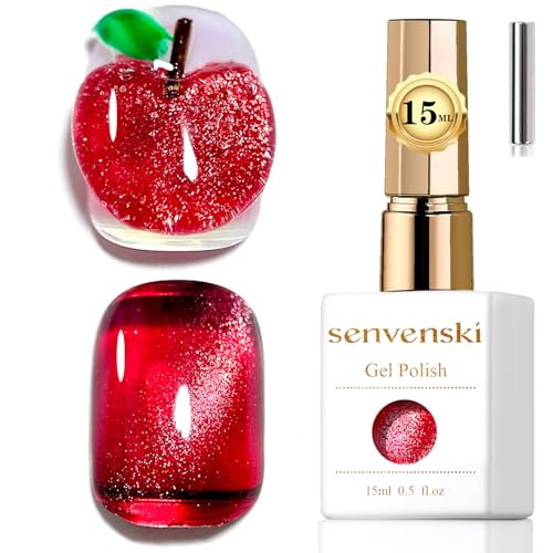 Senvenski Gelatin Vitral kattögonlack semipermanenta för naglar med magnet 15 ml magnetiska kattögon galaxer holografiskt glänsande färg gelnagellack (vinröd, 15 ml)