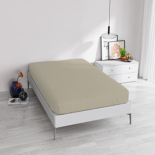 Miracle Home. Roda lakanset 3-delat set, justerbart underlakan, bänkskiva och örngott. Anti-skalning 50% bomull-50% borstad mikrofiber. Beige 90 x 200 säng 90