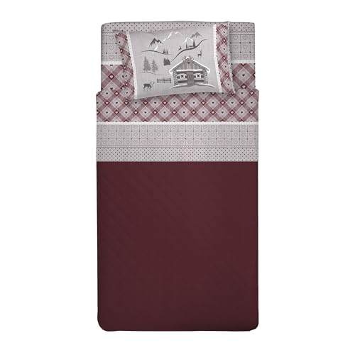 PENSIERI DELICATI Set med enkelsäng 100% bomull, set med lakan för enkelsäng 90 x 200 med underlakan, överlakan och 1 örngott, tillverkad i Italien, chalet röd