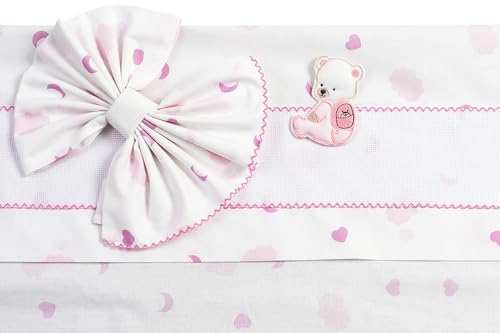 PENSIERI DELICATI Set med 1 mellanstor säng 100% bomull, set med lakan 1 mellanstor säng 120 x 200 med underlakan, över- och 1 örngott, tillverkad i Italien, gosedjur röd
