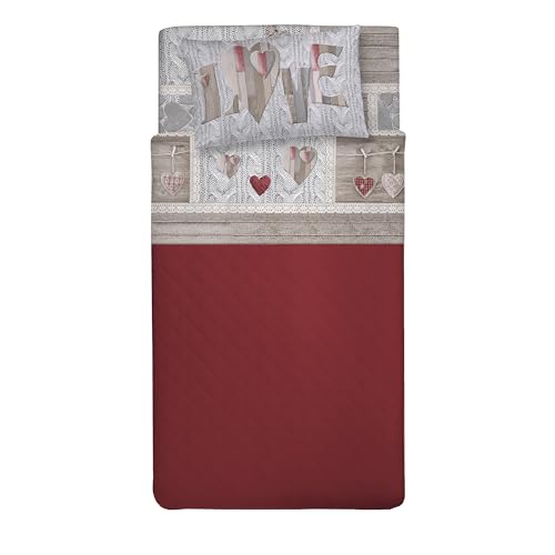 PENSIERI DELICATI Set med 1 mellanstor säng 100% bomull, set med lakan 1 mellanstor säng 120 x 200 med underlakan, över- och 1 örngott, Made in Italy, Fantasy Chalet Röd