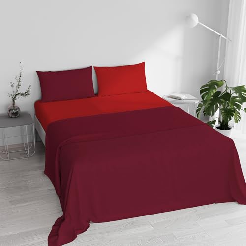 Set med lakan för dubbelsäng 100% naturlig bomull, tillverkad i Italien – set med sängkläder, underlakan med hörn, överlakan 240 x 300 cm och örngott med inre klaff, vinröd/röd