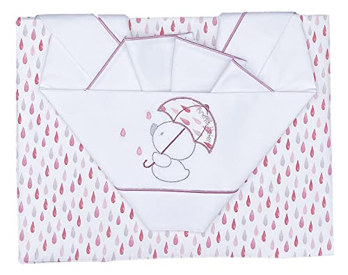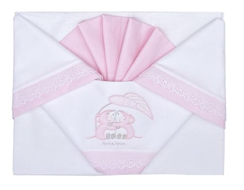 Andy & Helen Broderat spjälsäng/barnvagnslakan underlakan med elastiska band och örngott, ROSA