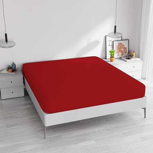 underlakan med hörn för dubbelsäng, bomull, tillverkad i Italien, lakan 170 x 200 med stretchhörn 25 cm, röd